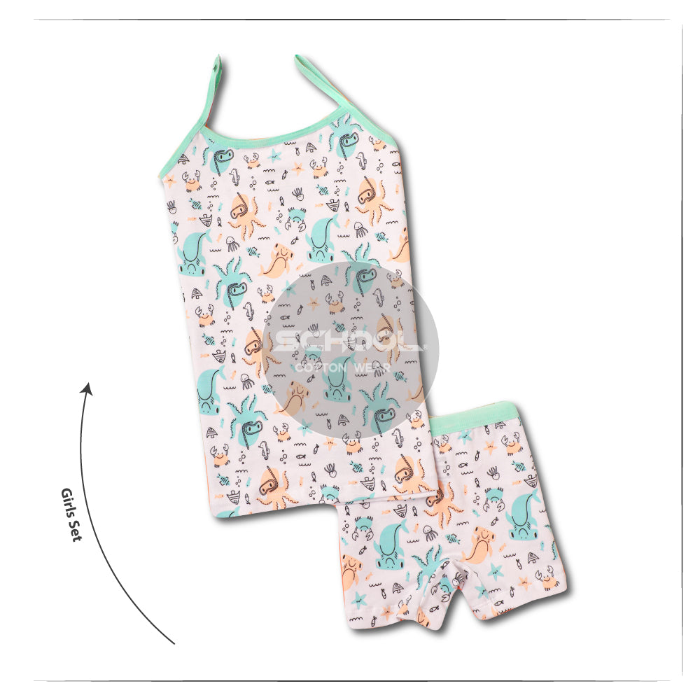 The same quality and trendy colours of SCHOOL collection with an extra twist of fun and playfulness, specially designed for your beloved little girl. The same collection is available in different models; brief, hot short and strap top. Mix and match the hot short and strap top and you will get the cutest sleeping set.